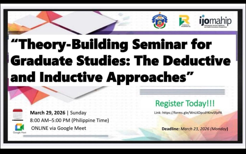 You’re invited to the first seminar in 2026 by VirtualRealia.org through the International Journal of Medicine and Health Innovations Perspectives (IJOMAHIP)—a CHED-aligned (CMO 15, s. 2019; CMO 21, s. 2025 on the PSG for Graduate Programs) online session to supercharge your dissertation theory-building!